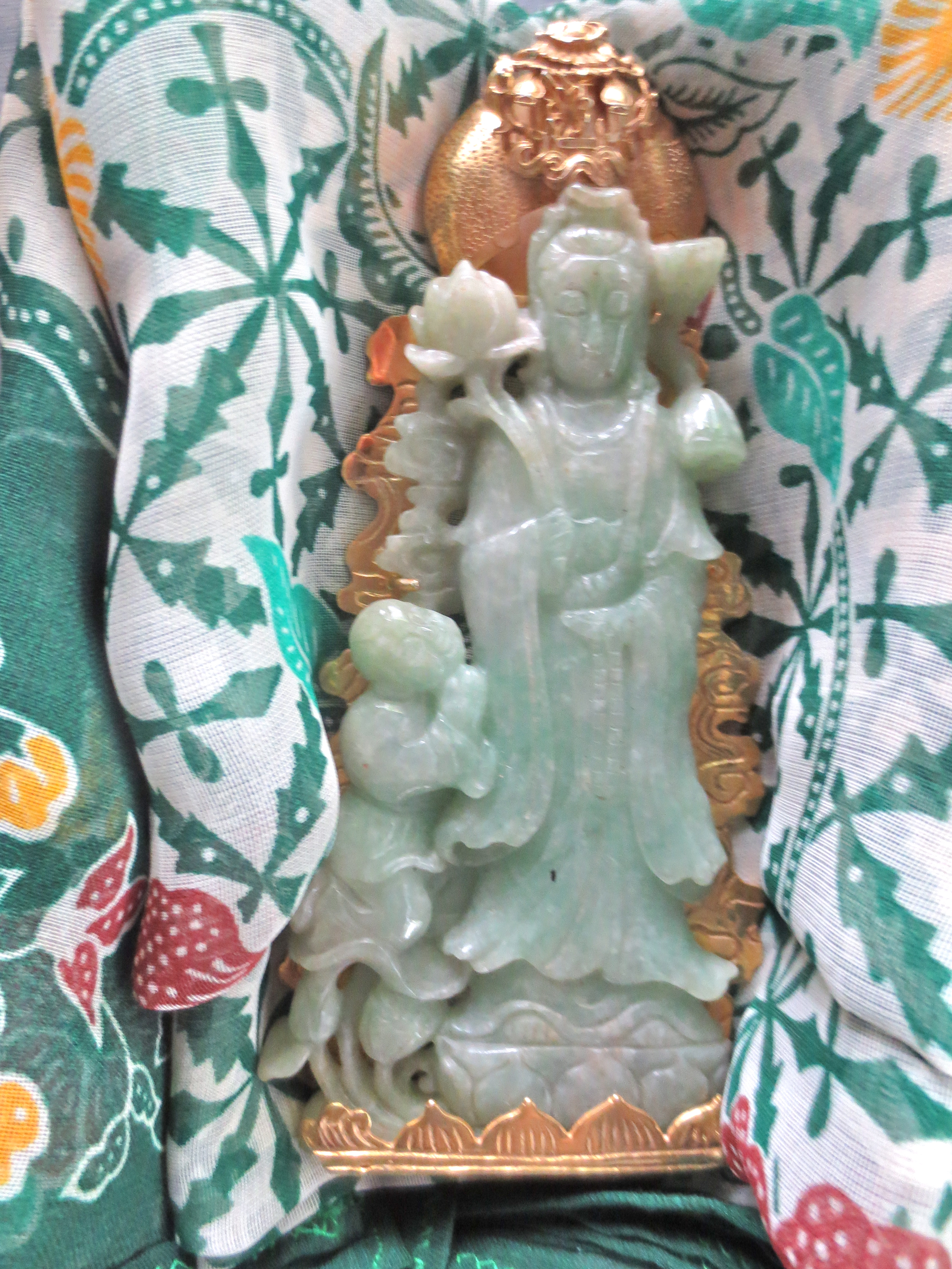 Fred made this with a jade GuanYin from his great grandmother, gold and love. It paid for half the funeral.