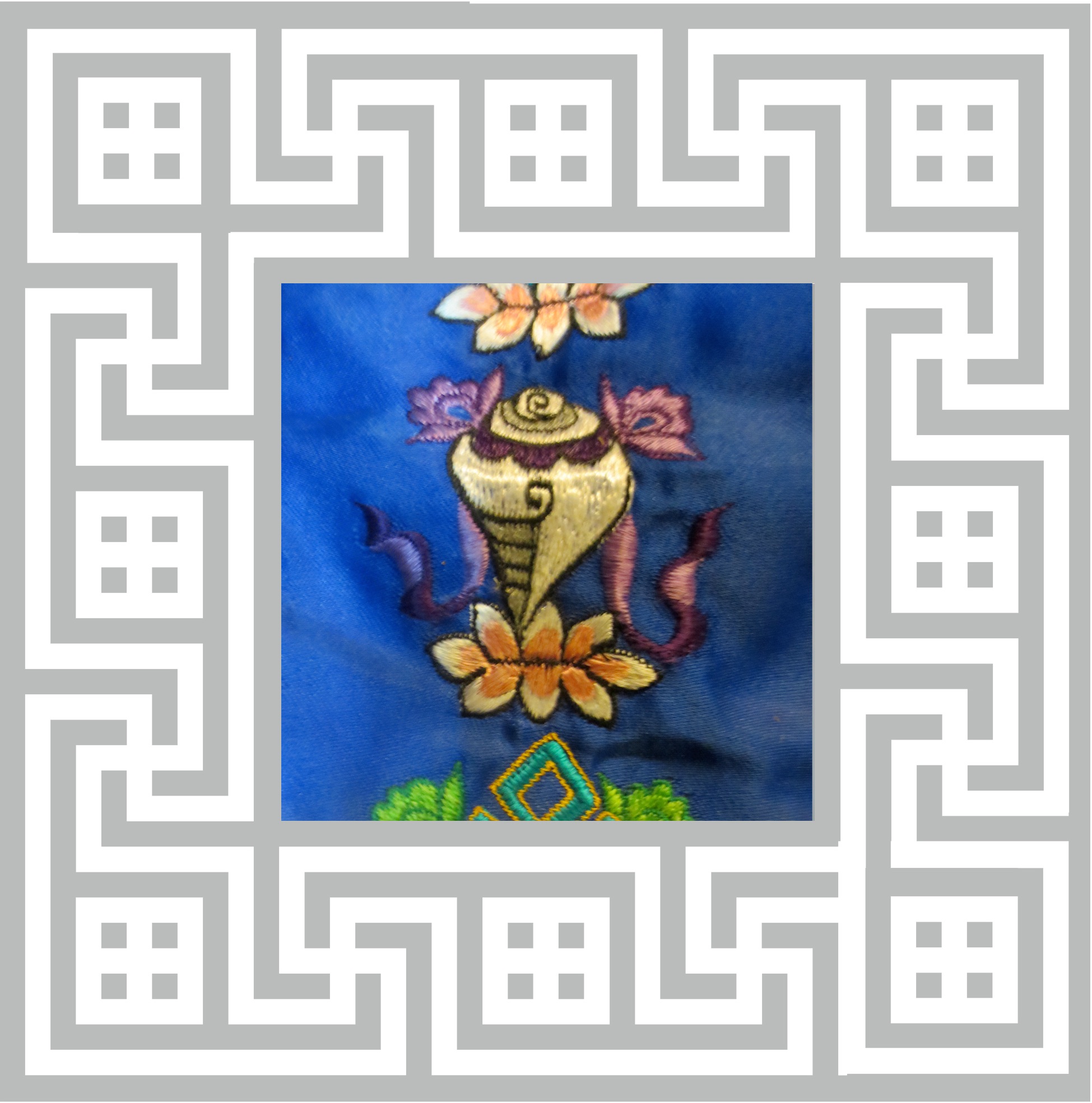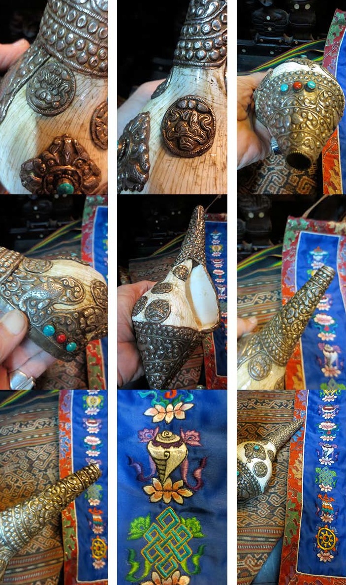 Conch shell. Representing the thoughts of the Buddha.